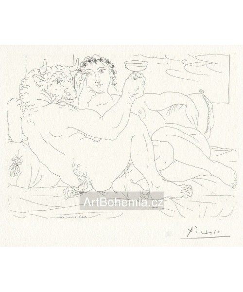 Minotaure, une coupe a la main, et jeune femme (Suite Vollard) (1933), B.190
